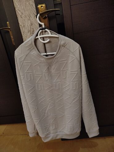 yenidir, böyük ölçü olduğuna görə satıram. aldığım qiymətdən ucuz satıram. əlavə endirim etmək olar. Kişi sviteri – bej/boz tonlarında, minimal dizayn. Yaxası dairəvi, ribana haşiyəli; ətək və qol...