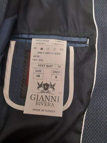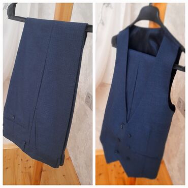 Geyim sifarişlə yeni alınıb gətirilib və sadəcə 44-0 ölçüsü uyğun gəlmədiyindən satılır. İki parçalı kişi kostyumu – qrafit boz rəngdə - Üst: ikicərgəli düymələmə, geniş haşiyəli (peak lapel) yaxa,...