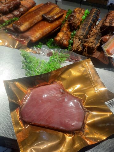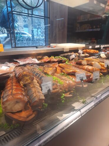 - Geniş seçimli tüstülənmiş balıq məhsulları: nərə və morjada (morz/merlang tipli), skumbriya, somon parçaları, file və rulonlar.