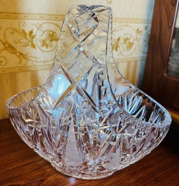 Kəsimli büllur meyvə/qənd qabı - Material: qalın, ağırlıqlı büllur -