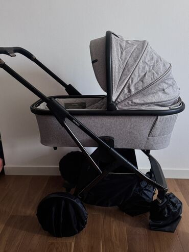 Uşaq arabası – çoxfunksiyalı, boz rəng. - 2-in-1 tipli modul: beşik tipli lyulka və oturacaq rejimi (şaquli bucaq tənzimlənməsi görünür). - Geniş, dərin lyulka; üstü böyük qapaqlı-baldaxan ilə, əla...