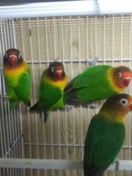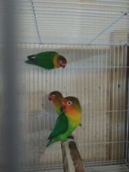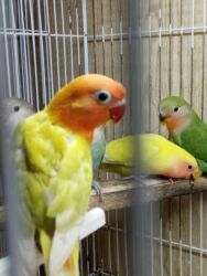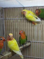 Məhsul: Agapornis (sevda) cüt papuqaylar Təsvir: - Kafesdə saxlanılan iki rəngarəng agapornis cütü - Rənglər: yaşıl-gövdəli, çəhrayı-qırmızı başlı; sarı-gövdəli, çəhrayı-qırmızı başlı - Aktiv və s...