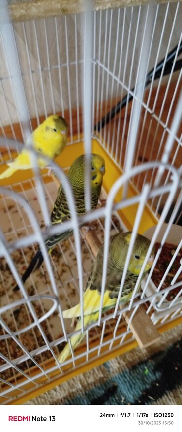 Quşlar satılır!Hazır cütdülər,hal-hazırda yumurtaya hazırlaşırlar, ağ balasıdı.Yaşıl təmiz Çexdi,göy isə Volnisdiy.3-ü birlikdə qəfəs qarışıq satılır Ünvan: Saray qəsəbəsi.Qiymət 65AZN