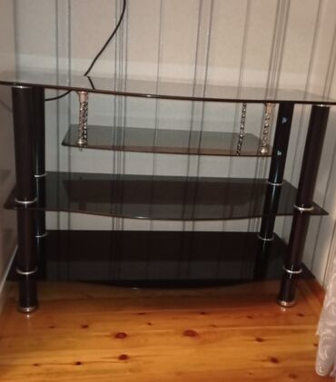 TV stend 3 mərtəbəli, möhkəm qara temperli şüşədən TV stend satılır. Az işlənib, təzə kimidir.