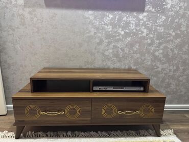 Sənaye üslubunda TV stendi / media konsolu - Material: möhkəm metal karkas + taxta (isti qəhvəyi ağac teksturası). - Dizayn: X formalı yan dayaq elementləri, Kabel çıxışı üçün arxa hissədə boşluq...