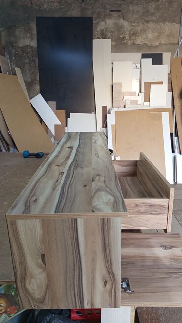 - Material: ağac teksturalı laminat (təbii naxışlı, isti tonlarda)