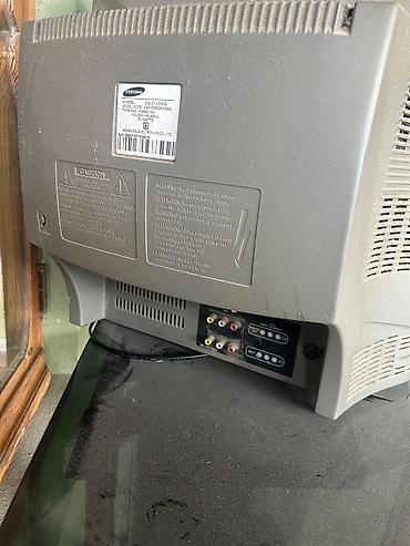 Samsung kineskop televizor - Ekran: təxminən 21" (qabarıq kineskop ekran) - Korpus rəngi: tünd boz/qara - İdarəetmə: ön paneldə mexaniki düymələr (güc, kanal/səs idarəsi və menyu), üstündə pult gö...