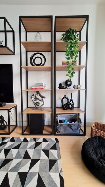 Industrial üslubda iş masası və rəf sistemi 💥 Endirim 💥 - Material: qara metaldan möhkəm karkas, ağac naxışlı laminat masaüstü və rəf səthləri - Dizayn: sağ tərəfdə dekorativ metal dayaq elementlər...