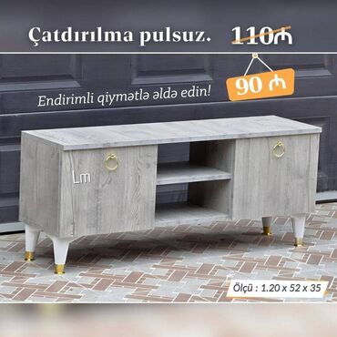 TV STEND / TV altı Yeni və sifarişlə. Qiymət : 90₼ Ölçü : en1.20xhün52xdər35 Rəng seçimi sərbəst. ✔ Çatdırılma və quraşdırılma Bakı daxili pulsuz