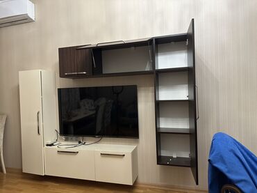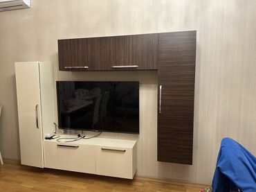 Qonaq otağı üçün çoxfunksiyalı divar dəsti / TV stendi Təcili satılır.Sokulmus vəziyyətdədir.Sadece arxaliq DVP-si yoxdu - Material: açıq ağac tonlarında laminat (modern tekstura), metal tutacaqla...