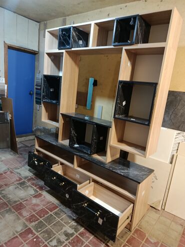 - İstifadə: qonaq otağı üçün TV zonası, dekor və elektronika üçün rəf və bölmələr