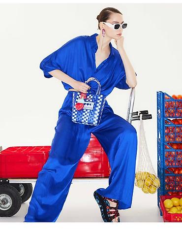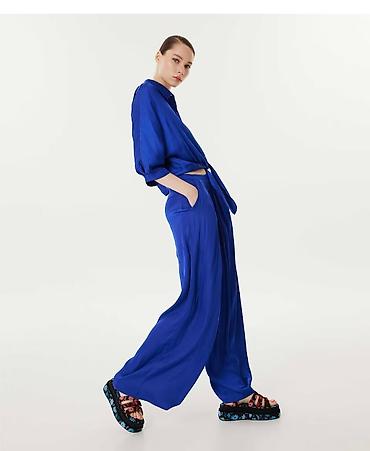 ((Çekme satıldı ))Qadın geyim və ayaqqabıları – dəst və ayrı-ayrı məhsullar 1) İkiqat düyməli kostyum (şalvar + blezer) - Rəng: elektrik mavisi - Kəsim: yüngül oversize blezer, iki cərgə düymə, ya...