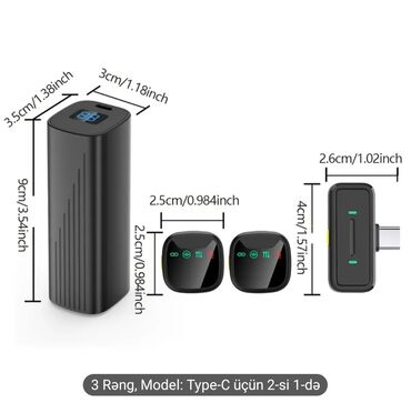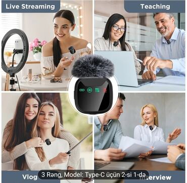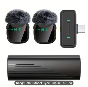 - Paket tərkibi: 2 ədəd simsiz klips mikrofonu (kürk külək filtri ilə), 1 ədəd Type‑C qəbuledici (plug‑and‑play), portativ şarj/case.