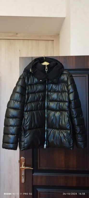 Yenidir.Cəmi 1 dəfə geyinilib,L razmer(böyük olduğu üçün satılır) Qısa model qara şişmə gödəkçə - Material: parıltılı, suya davamlı sintetik üst qat, içi isti dolguludur - Rəng: klassik qara - Diz...
