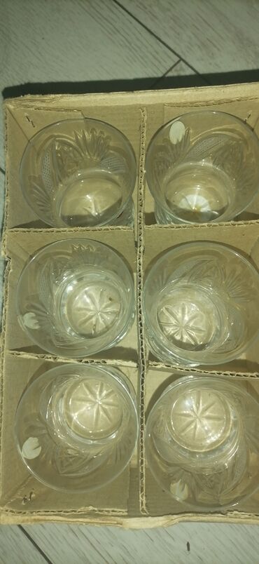 DigərTəzə qutuda olan xrustal armudu stakanlar dəsti 6 ədəd xrustal stəkanlardı sovet dövründə alınıb işlənməyib loqotipi üstündədir