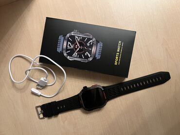 Təzə smart sport saat satılır. Qutusu, USB şarj kabeli və saat özü tam şəkildə verilir.
