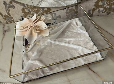 Xonça və nişan bəzəkləri – zövqlü əl işi komplektlər - Nişan, xına və toy üçün müxtəlif ölçüdə xonça/tray dəstləri - Şəkillərdə: şəffaf akril və güzgülü vitrinli xonçalar, bəzəkli səbətlər, hədiyy...