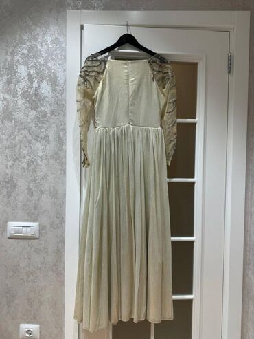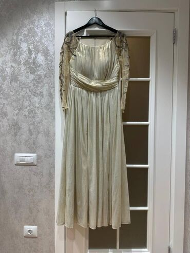 Zərif ziyafət/libas – şampan-qızılı rəngdə, tam uzunluqda.Teptezedir heçbir prablemi yoxdur qollarının tulude var – Üst hissə: bədənə oturan korset tipli kəsim, incə muncuq və payet işləmələri ilə...