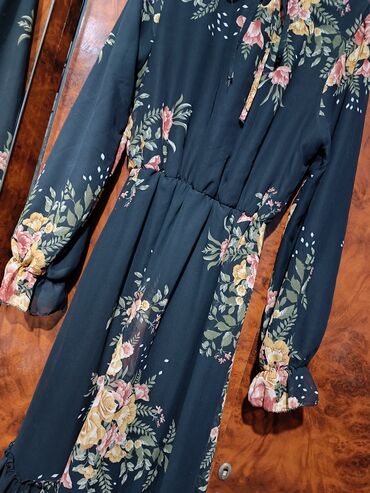 Zərif ziyafət/libas - Rəng: toz-çəhrayı (lilac tonlarında) - Model: uzun, A-kəsimli, yüngül flarlı ətək - Parça: şəffaf tül üst qat, incə romb naxışlı; altlıqla birlikdə - Yaxa: V-kəsim - Qol: 3/4...