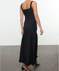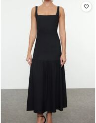 Bu qara maksi don zərif və axıcı dizaynı ilə seçilir. Yüksək yaxalı və qolsuz bu don müxtəlif tədbirlər üçün uyğundur. Kəmər mirvari bəzəkli oval toka ilə tamamlanaraq dona xüsusi bir görünüş verir...