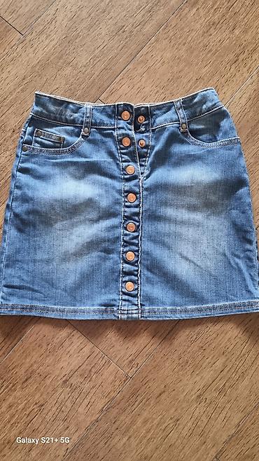 Uşaq üçün cins ətək – Yigga, ölçü 140 - Açıq mavi denim parça - Ön hissədə fermuar və düymə bağlanması - Yanlarda iki ön cib, arxada cib tikişləri - Kəmər keçirilməsi üçün ilgəklər - Sağ alt hissə...