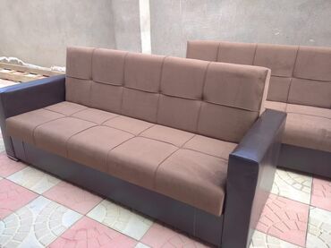 - Material: Mebel parçası (nubuk/şönil üslubunda), toxuması yumşaq və toxunuşa xoş; rənglərdən nümunələr: boz, krem, qəhvəyi və tünd mavi.