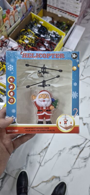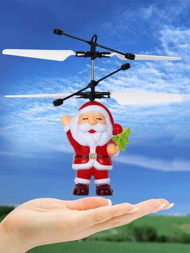 Bayram ab-havası gətirən, əlinizin hərəkətinə reaksiya verən əyləncəli uçan Şaxta Baba oyuncaq helikopter Çatdirilma var
