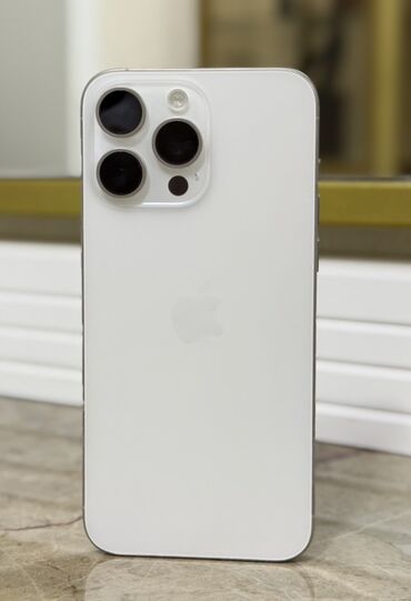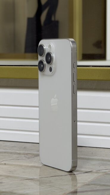Məhsul: Apple iPhone (Pro seriyası) - Rəng: Ağ/White (Titan bənzər ton) - Korpus: premium metal çərçivə, şüşə arxa panel - Ekran: kənarlara qədər geniş panel, Dynamic Island kəsiyi ilə; yüksək...