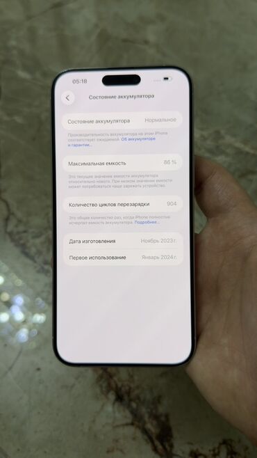 Salam iphone 15 pro max 256 ciziqsiz Pil90 Apple iPhone (Pro seriyası) - Rəng: Gümüşü/boz tonlarda metal korpus, düz kənarlı dizayn - Ekran: Tam ekran, Face ID üçün üst hissədə çıxıntı (notch) - P...