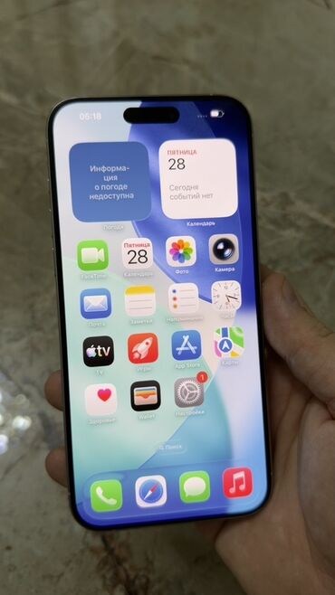 Apple iPhone (Pro seriyası) Xüsusiyyətlər: - Korpus: fırçalanmış titan çərçivə, mat arxa səth, kvadrat kənarlar - Rəng: boz/titan tonu - Ekran: tam ekran panel, ön hissədə Face ID üçün Dynamic Isl...