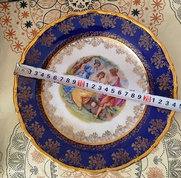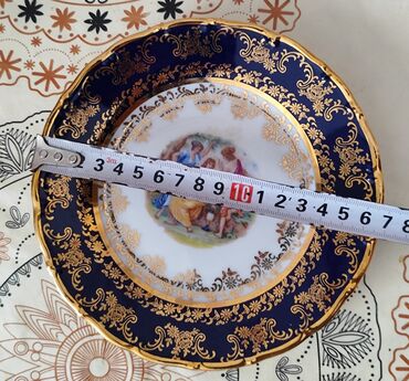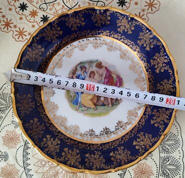 Çexiya istehsalı olan, kobalt rəngli, əl işi, zərif farfor qab. Qabın mərkəzində qızılı haşiyə ilə əhatə olunmuş portret təsviri var. Kənarları və tutacaqları qızılı rəngdədir. Dekorativ və ya prak...