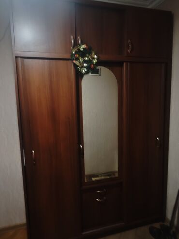 • Üç qapılı qarderob (tünd ağac rəngi)