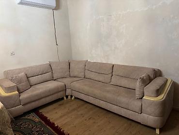 Endirim edildi ❌ Künc divanı pufiklə birlikdə — 500 AZN 🏡 Xocəsən ⚡️⚡️ lale 2 kod 2 - Yumşaq bej rəngli parça və tünd qəhvəyi baza ilə L formalı künc divanı - Dairəvi pufik dəstəyə daxildir - Üstü...