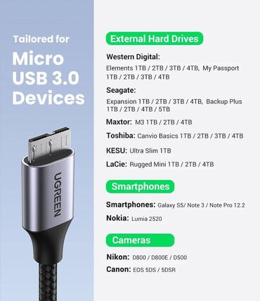 ✅Xarici HDD və SSD-lər üçün 100% uyğun — WD My Passport, Seagate, Toshiba və bütün Micro-B 3.0 çıxışlı diskləri problemsiz dəstəkləyir.