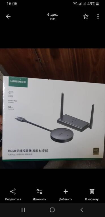 Pulsuz çatdırılmaUgreen wireless HDMI gorunti oturucu aparat. Tep tezedir karobkanin salofani bele acilmayib. Electro Galery magazasindan 299 manata alinib. Bu aparat vasitesi ile HD goruntini ve sesi shunursuz kabelsiz 50 metreye qeder oturme imkani yaradir. Qiymetinden qat qat ucuz verirem.