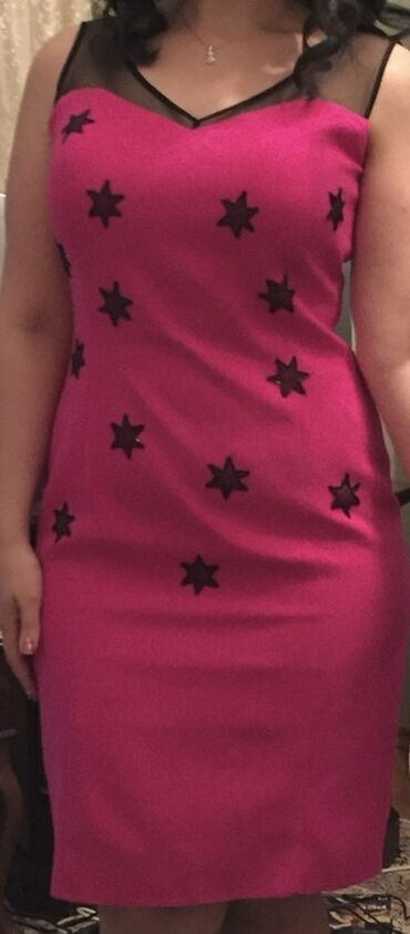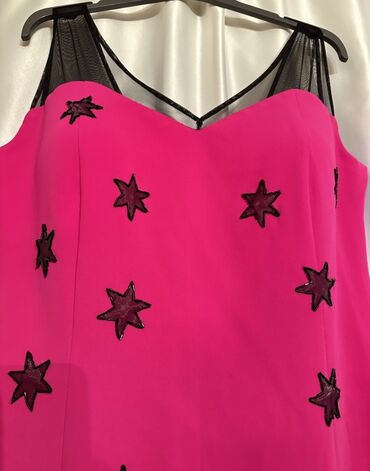 Bu çəhrayı rəngli qadın donu V formalı yaxalıq və torlu çiyinlərlə hazırlanmışdır. Donun üzərində qara rəngli ulduz naxışları yerləşir. Uzunluğu dizdəndir. Ziyafət və xüsusi tədbirlər üçün uyğundur. 1 dəfə geyinilib. Səliqəli saxlanılıb. X-lady brendinə məxsusdur. Ölçü 46. Qiyməti 20 AZN. Ünvan Qarayev metrosu