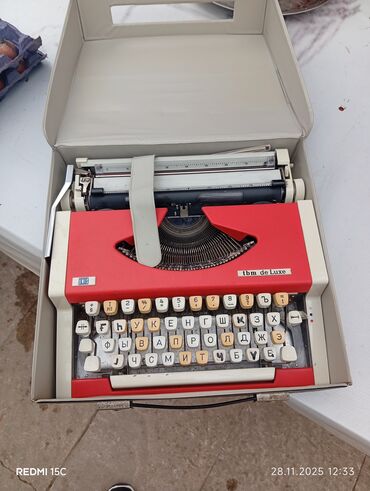 Başlıq: Az işlənib Təsvir: Az işlənib Məhsul: Mexaniki yazı maşını – Unis “Ibm de luxe” (portable) - Rəng: narıncı/ağ korpus, ağ düymələr - Klaviatura: latın qlifləri + Azərbaycan dilinə uyğun xü...
