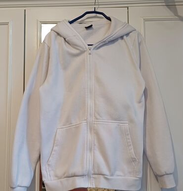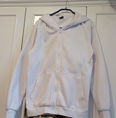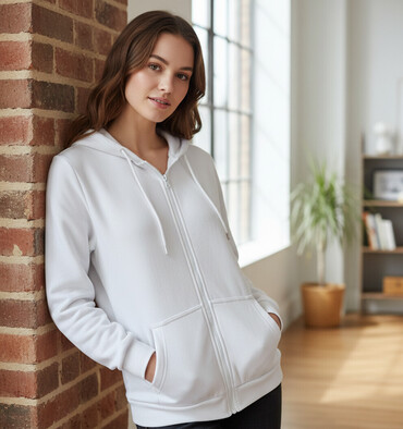 EndirimsizAğ rəngli kapüşonlu fermuarlı svitşört (zip hoodie)