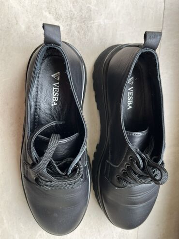 VESBA brendi – qara dəri ayaqqabı - Model: bağlamalı, aşağı boğaz -