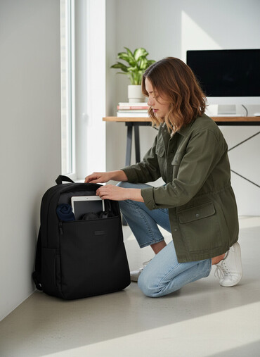 Şəhər və ofis üçün çoxfunksiyalı bel çantası - Rəng: qara - Material