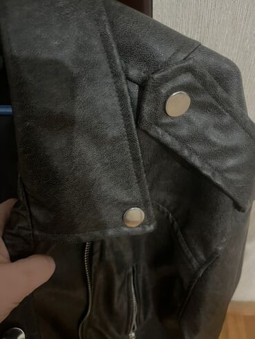 Qara dərili gödəkcə – “enter*” brendi - Model: biker stilində qısa kəsim - Rəng: parlaq qara - Beden: 36 (etiketdə) - Material: süni dərini xatırladan hamar parça, iç hissə astarlı - Yaxa: geniş, ...