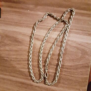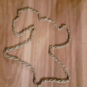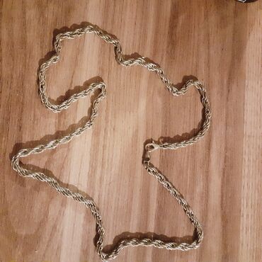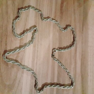 Qızıl rəngli zəncir kolye - Material: metal ərintisi, qızılı rəng örtüklü - Naxış: bükülü/çörəkçi (rope chain) formalı halqalar – ikitərəfli parlaq cilalanma - Rəng: isti sarı qızıl ton - Kilid: k...