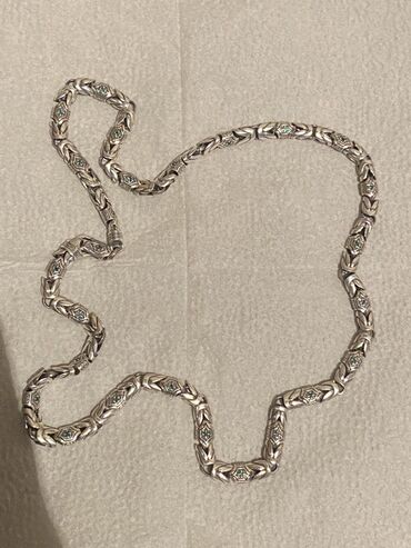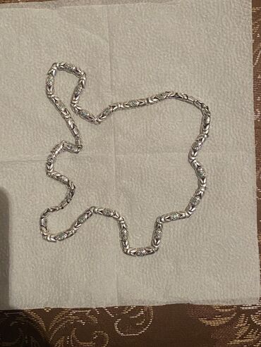 925 əyarlı gümüş boyunbağı. 100azn. qiymət sondu.. 30 qram - Material: 925 Sterling Silver (qıfıl hissəsində “925” damğası var) - Zəncir növü: sıx, dördlü halqalı (qalın, dairəvi hörgü) - Rəng: pa...
