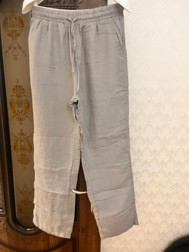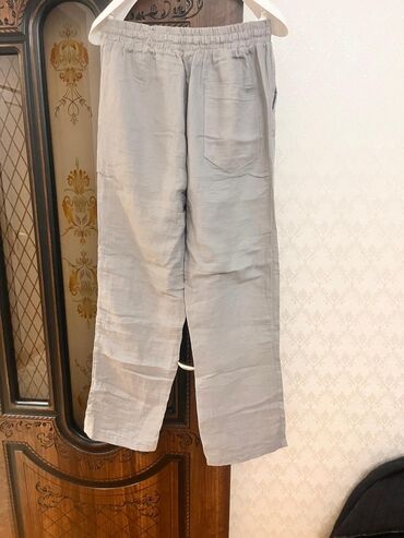 Boz rəngli şalvarı s,m ölçü - Model: klassik düz kəsim (straight fit), gündəlik/ofis üslubuna uyğun - Material: nazik və yüngül parça (yay və demi-mövsüm üçün rahat), tərkibi ehtimalən pambıq qar...