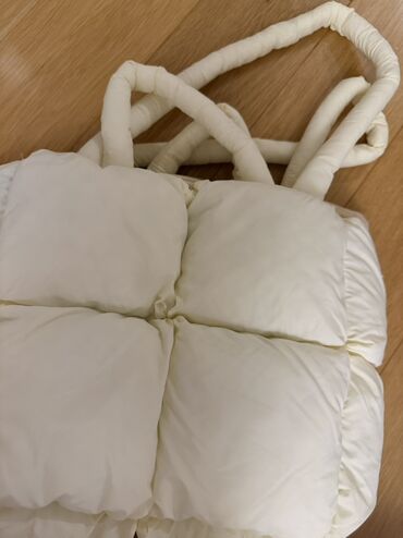 Şişmə teksturalı bej/ağ rəngli çanta