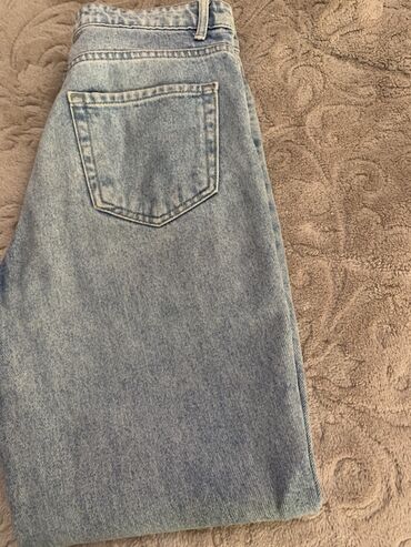 Yüksək belli mavi cins şalvar - Klassik açıq-mavi rəng, yüngül solğun effekt - Yüksək bel kəsimi, düyməli və fermuarlı bağlanma - 5 ciblə: iki ön cib, kiçik sikkə cibi və iki arxa cib - Kəmər ilgə...