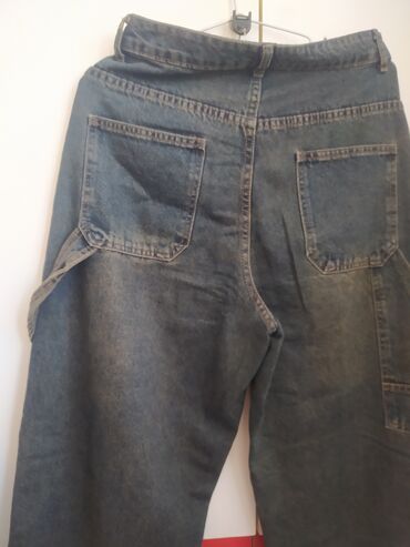 Geniş kəsimli uniseks cins şalvar - Rəng: Açıq mavi (klassik light wash) - Parça: Cins (denim), qalın və yumşaq - Kəsim: Super geniş paça, rahat və bol siluet - Bel: Orta bel; kəmər üçün ilgəklər ...