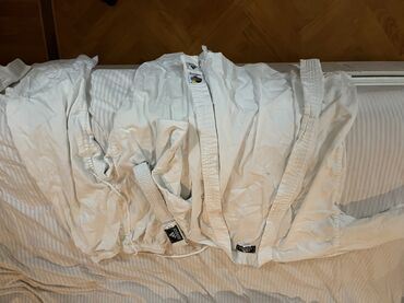Adidas karate geyim dəsti 130sm - Brend: Adidas - Model: WKF Approved (Ümumdünya Karate Federasiyası tərəfindən təsdiqlənmiş) - Komplekt: üst (kurtka), şalvar və kəmər - Rəng: ağ - Material: qalın...