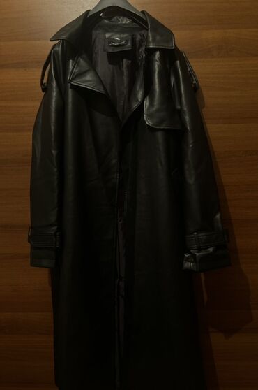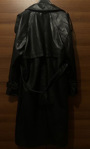 Qara dəridən uzun trençkot -Yenidir geyinilmiyib. - Klassik uzun