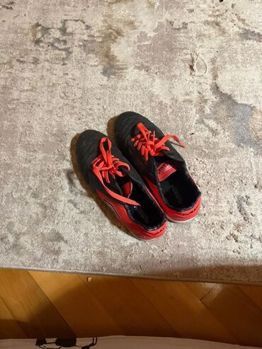 Kişi idman ayaqqabısı – zeytun-yaşıl rəng - Üst: sintetik dəri və tekstil kombinasiyası, tikişlərlə möhkəmləndirilmiş panellər - Rəng: zeytun-yaşıl, qara detallarla - Marka yazısı: yan hissədə “BO...